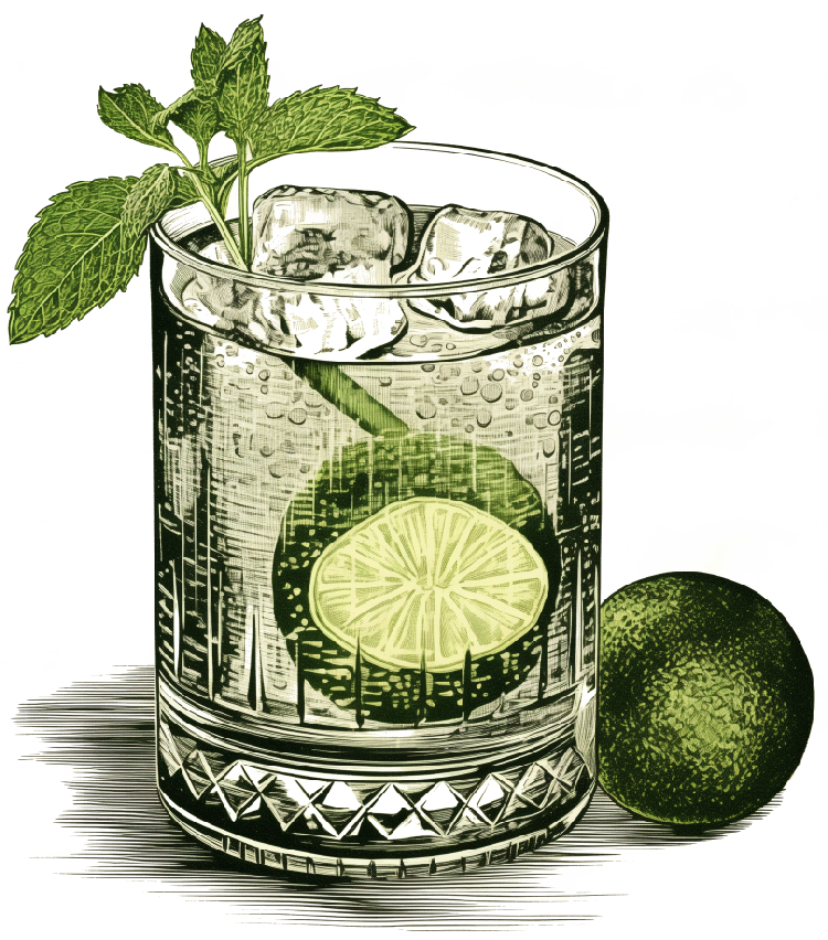 Estragon, Fennel, Pine bud, Liquorice, Rosemary, Cardamom, Lavender, Elderflower, Gentian, Basil, Cinnamon, Thyme, Chamomile, Sage, Laurel, Caraway, Cumin, Coriander, Maniguette, Orange peel, Juniper, Angelica, Iris, Lemon peel, Black Tea